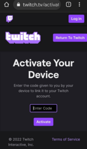 - Open a web browser and head to https://www.twitch.tv/activate on a different device, such as a computer or smartphone.